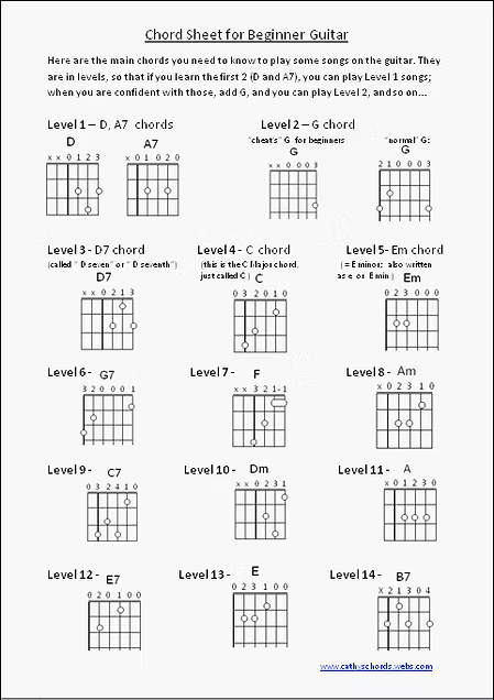 Chord Sheet for Beginner Guitar.